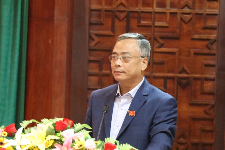| Trưởng ban Kinh tế - Ngân sách HĐND tỉnh Võ Đại Huế trình bày báo cáo thẩm tra kết quả thực hiện kế hoạch phát triển kinh tế - xã hội, đảm bảo quốc phòng, an ninh |