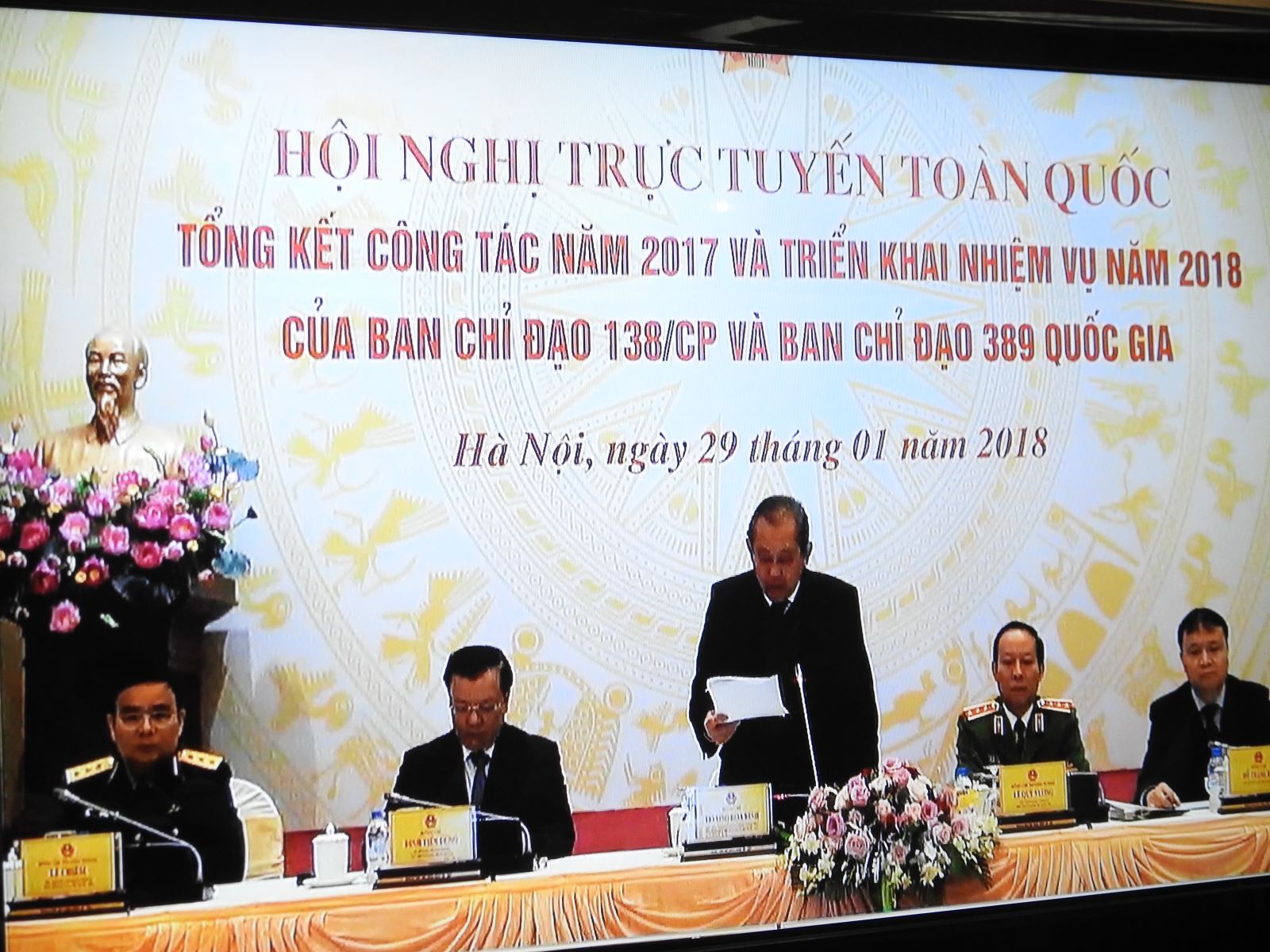 Sáng ngày 29/01/2018, Ban Chỉ đạo 138/CP và Ban Chỉ đạo 389 quốc gia đã tổ chức Hội nghị tổng kết công tác năm 2017 và triển khai nhiệm vụ công tác năm 2018 theo hình thức trực tuyến tại 63 điểm cầu. Tham dự và chủ trì hội nghị tại điểm cầu Trung ương có đồng chí Trương Hòa Bình, Ủy viên Bộ Chính trị - Phó Thủ tướng Thường trực Chính phủ, Trưởng Ban Chỉ đạo 138/CP và Ban Chỉ đạo 389 quốc gia. Đồng chí Y Giang Gry Niê Knơng, Phó Chủ tịch UBND tỉnh chủ trì hội nghị tại điểm cầu Đắk Lắk.