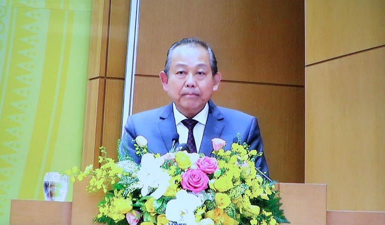 | Phó Thủ tướng Thường trực Chính phủ phát biểu tại hội nghị (Ảnh chụp từ màn hình) |