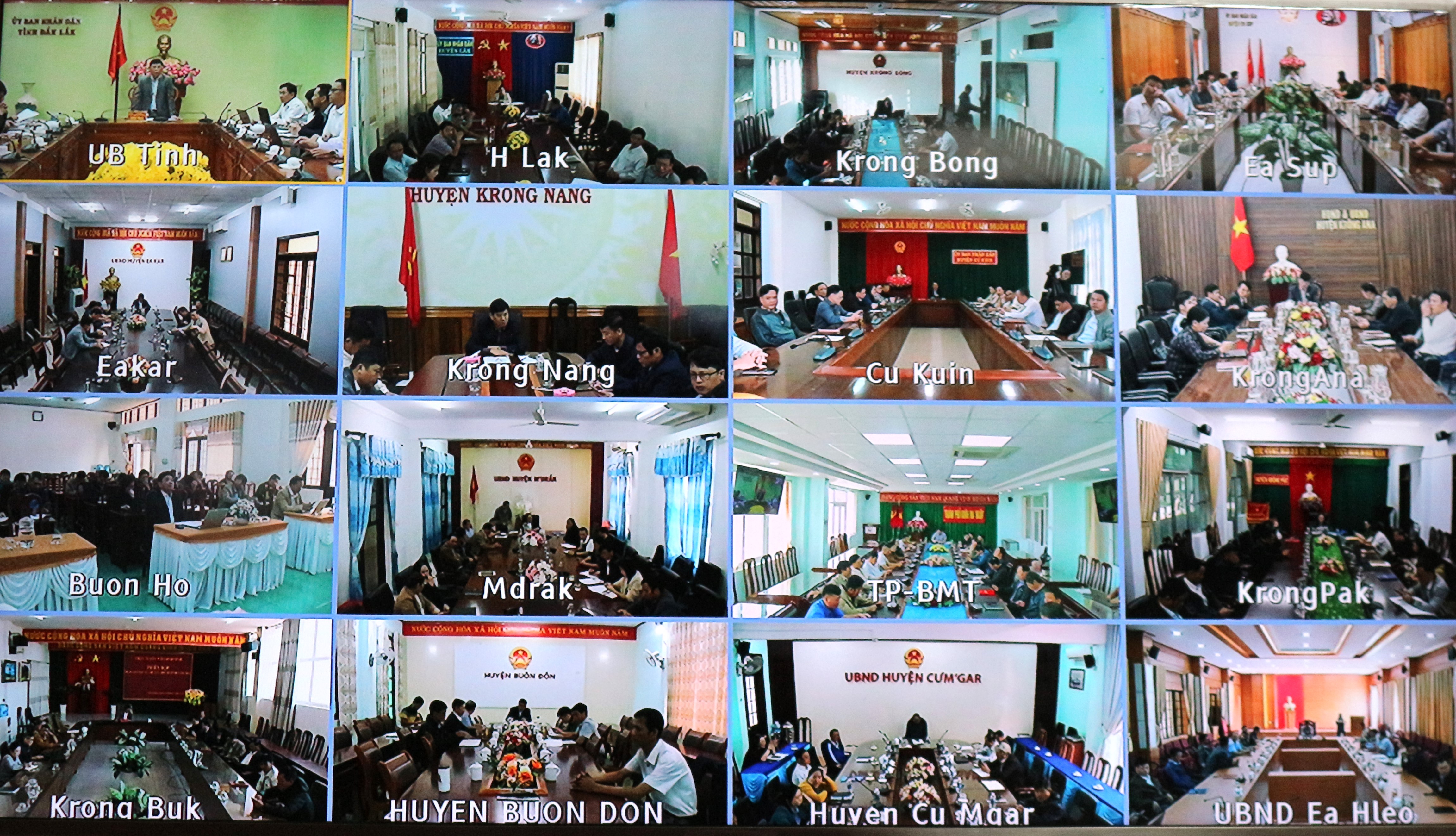 | Điểm cầu UBND các huyện, thị xã, thành phố tham gia phiên họp |