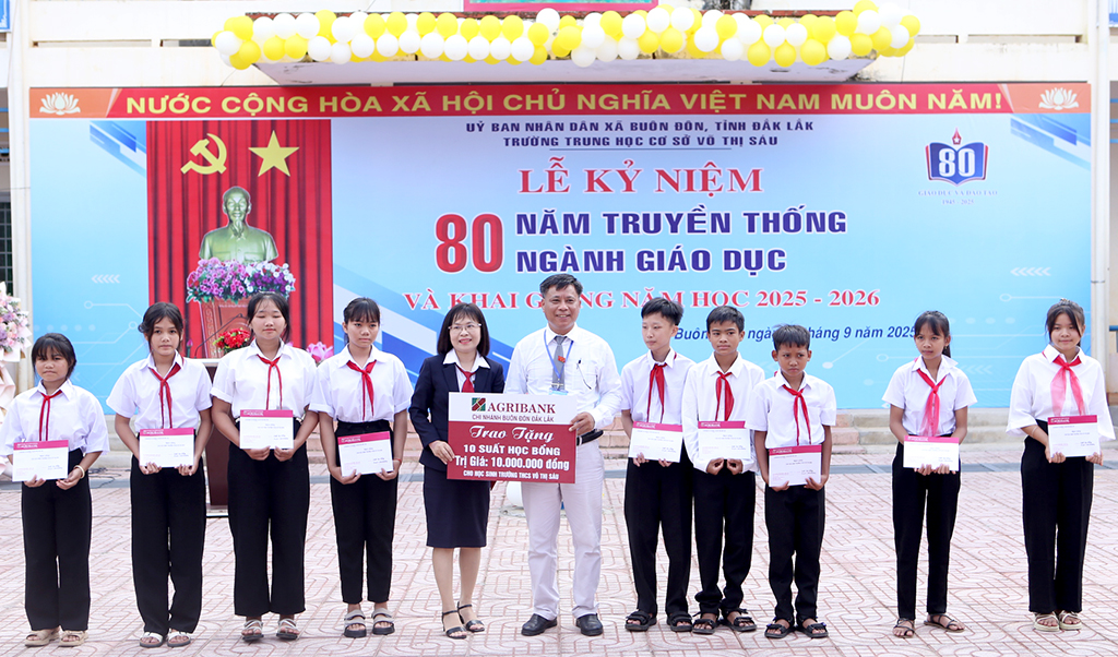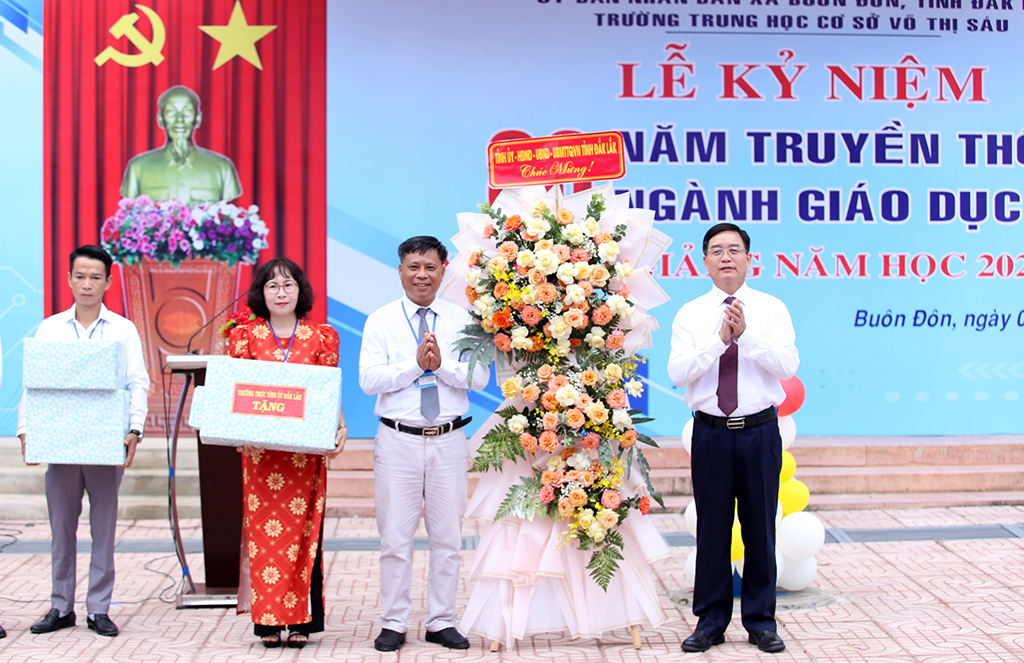 Sáng 5/9, Trường THCS Võ Thị Sáu, xã Buôn Đôn, tỉnh Đắk Lắk long trọng tổ chức Lễ kỷ niệm 80 truyền thống ngành giáo dục và Khai giảng năm học mới 2025-2026. Tham dự buổi lễ có đồng chí Nguyễn Đình Trung - Ủy viên Ban Chấp hành Trung ương Đảng, Bí thư Tỉnh ủy - Uỷ viên Trung ương Đảng, Bí thư Tỉnh ủy; đồng chí Lê Thị Thanh Xuân – Giám đốc Sở Giáo dục và Đào tạo.