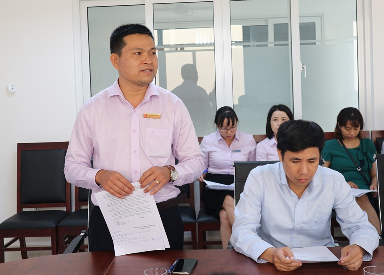 | Phó Trưởng phòng phụ trách Phòng Kiểm soát thủ tục hành chính, Văn phòng UBND tỉnh Đắk Lắk Nguyễn Văn Trường tham gia ý kiến tại buổi làm việc |