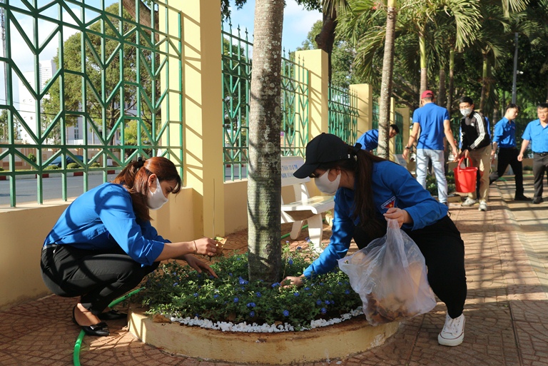 Theo đó, 40 đoàn viên, thanh niên Chi đoàn Thanh niên Văn phòng HĐND và UBND tỉnh đã tiến hành các phần việc cụ thể như: quét dọn, rửa khuôn viên sân; vệ sinh bồn cây, rải đá bảo vệ bồn hoa; quét vôi gốc cây xanh; lau tay vịn, lan can cầu thang.