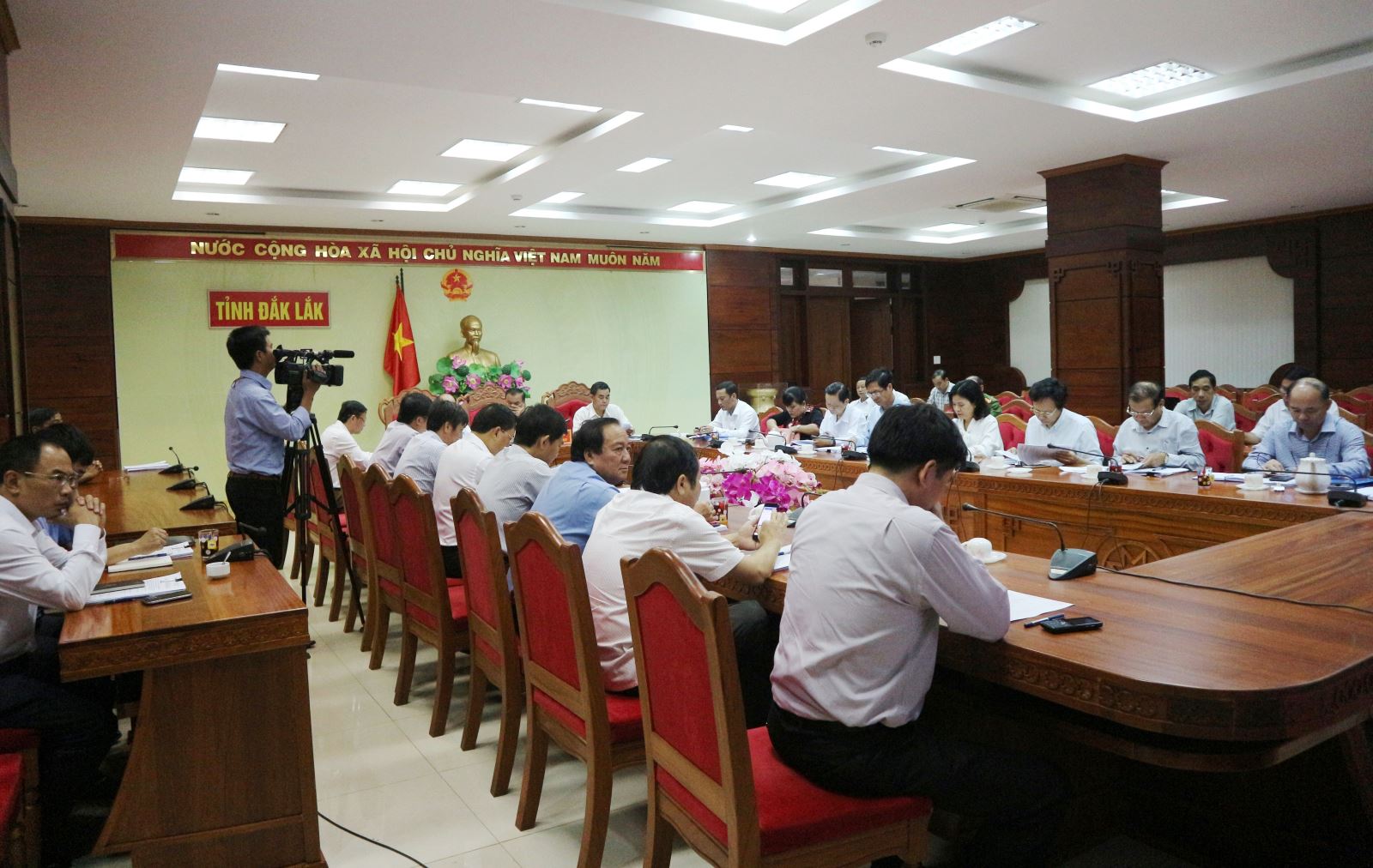 Sáng 02/7, Chính phủ tổ chức Hội nghị trực tuyến đánh giá tình hình kinh tế - xã hội 6 tháng đầu năm và triển khai nhiệm vụ 6 tháng cuối năm 2018 tại 63 điểm cầu. Ủy viên Bộ Chính trị, Thủ tướng Chính phủ - Nguyễn Xuân Phúc tham dự và chỉ đạo hội nghị tại điểm cầu Trung ương. Tại điểm cầu Đắk Lắk có các đồng chí: Êban Y Phu - Bí thư Tỉnh ủy; Y Biêr Niê - Phó Bí thư Tỉnh ủy, Chủ tịch HĐND tỉnh; Phạm Ngọc Nghị - Phó Bí thư Tỉnh ủy, Chủ tịch UBND tỉnh - chủ trì và lãnh đạo các cơ quan, đơn vị trên địa bàn.