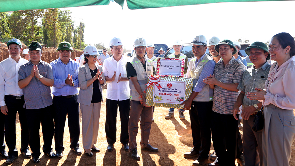 Thay mặt lãnh đạo tỉnh, đồng chí Phạm Ngọc Nghị - Phó Bí thư Tỉnh ủy, Chủ tịch UBND tỉnh đã ghi nhận, hoan nghênh tinh thần làm việc của tập thể người lao động trên công trường đã không quản ngại khó khăn, làm việc trong cả ngày nghỉ, lễ, Tết. Nhân dịp đầu năm mới Giáp Thìn 2024, đồng chí gửi lời chúc sức khỏe, mong tập thể cán bộ, kỹ sư, công nhân và người lao động của các đơn vị tiếp tục phát huy tinh thần “vượt nắng, thắng mưa”; bố trí nhân lực, vật lực đầy đủ để đẩy nhanh tiến độ thi công; chủ đầu tư phối hợp chặt chẽ với chính quyền địa phương, nhà thầu trong thực hiện các hạng mục thi công trên công trường; giám sát chặt chẽ mọi hoạt động của nhà thầu, đảm bảo chất lượng, tiến độ, an toàn, vệ sinh môi trường; phấn đấu hoàn thành hạng mục công trình vượt tiến độ dự kiến.