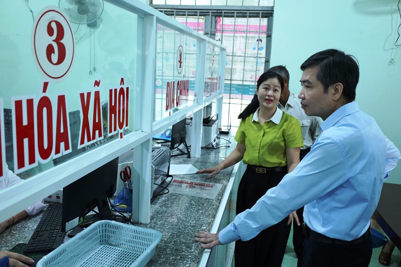 Đồng chí Tạ Anh Tuấn, Chủ tịch UBND tỉnh thăm Trung tâm phục vụ hành chính công của xã Ea Bung.