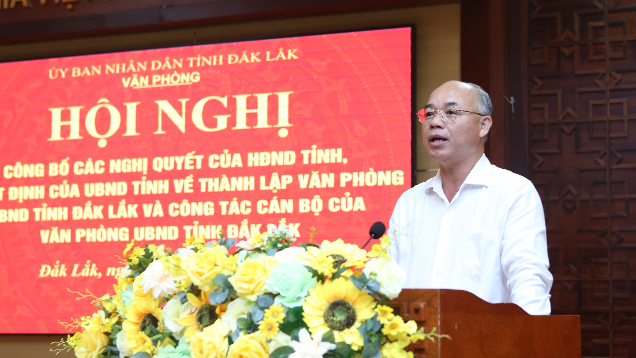 Chiều 9/7, Văn phòng UBND tỉnh Đắk Lắk tổ chức Hội nghị công bố các Nghị quyết của HĐND tỉnh, Quyết định của UBND tỉnh về thành lập Văn phòng UBND tỉnh Đắk Lắk và công tác cán bộ của Văn phòng UBND tỉnh.