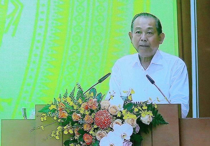 | Phó Thủ tướng Thường trực Chính phủ Trương Hoà Bình phát biểu kết luận hội nghị (Ảnh chụp màn hình) |