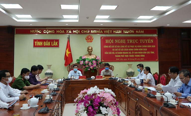 Chiều 24/4, Bộ Nội vụ đã tổ chức Hội nghị trực tuyến công bố chỉ số cải cách hành chính (CCHC) năm 2020 và chỉ số hài lòng về sự phục vụ hành chính năm 2020 của các bộ, cơ quan ngang bộ, UBND các tỉnh, thành phố trực thuộc Trung ương. Phó Thủ tướng Chính phủ Trương Hoà Bình tham dự tại đầu cầu Trung ương. Phó Chủ tịch Thường trực UBND tỉnh Nguyễn Tuấn Hà chủ trì và đại diện lãnh đạo các sở, ngành tham dự cùng 15 điểm cầu phụ tại UBND các huyện, thị xã, thành phố tại điểm cầu tỉnh Đắk Lắk.