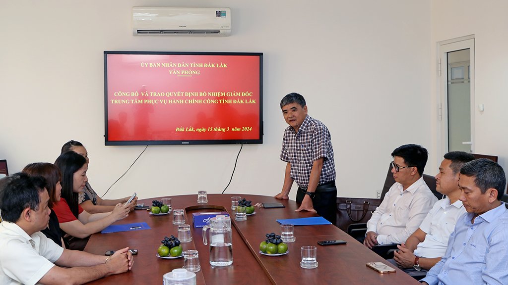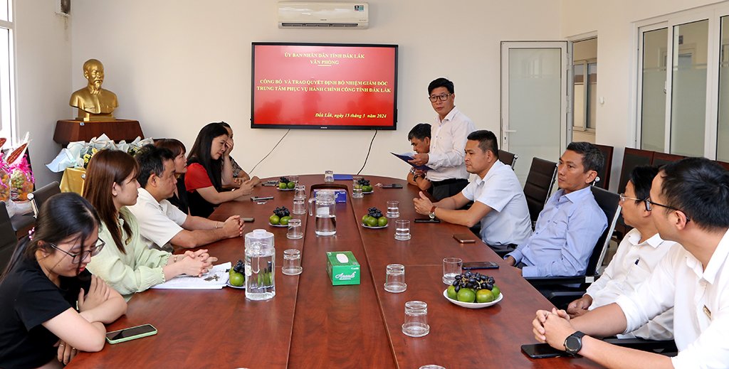 Chiều 15/3, Văn phòng UBND tỉnh tổ chức Hội nghị công bố và trao Quyết định bổ nhiệm Giám đốc Trung tâm Phục vụ hành chính công tỉnh Đắk Lắk.