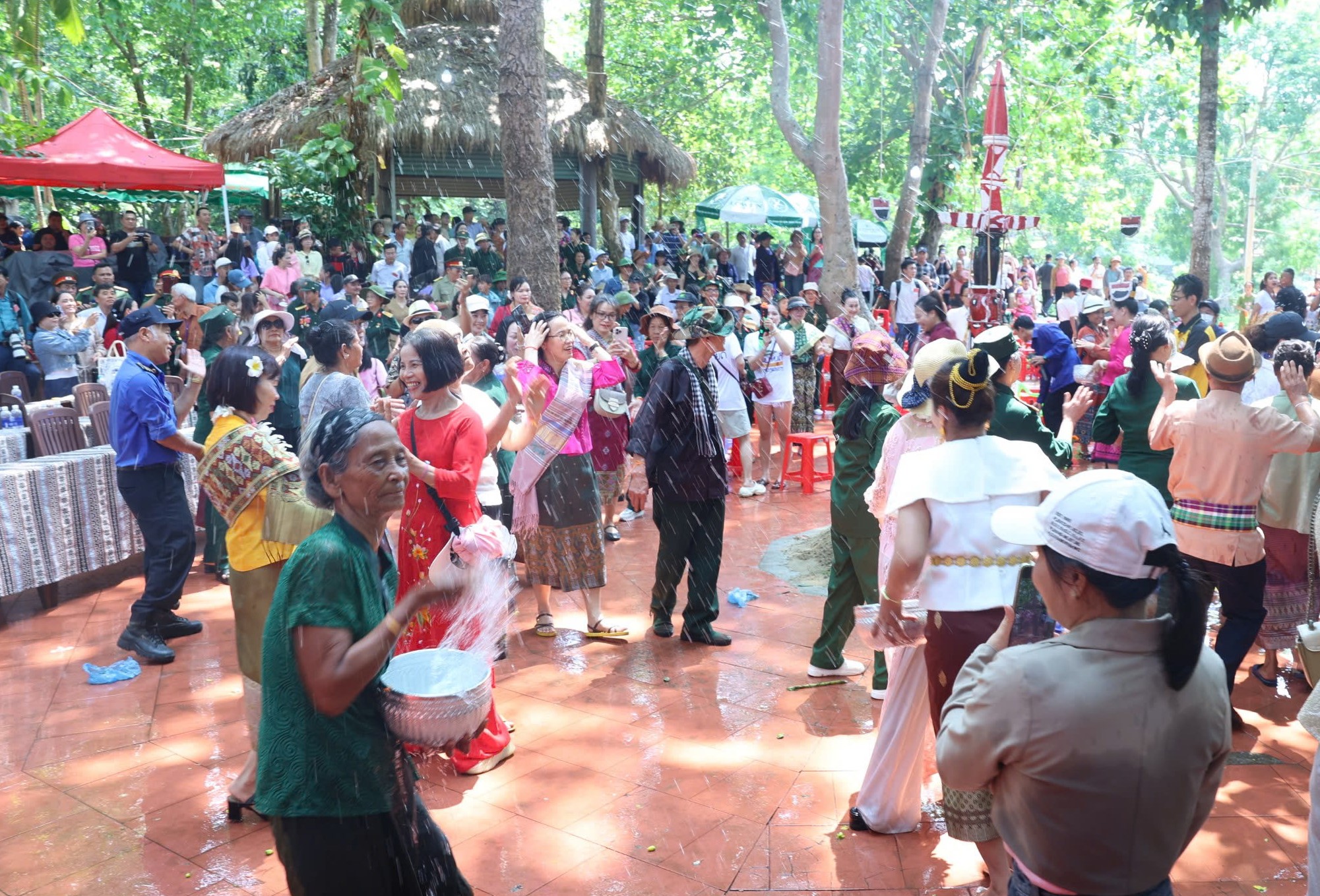 | Người dân và du khách tham gia Hội té nước. |
