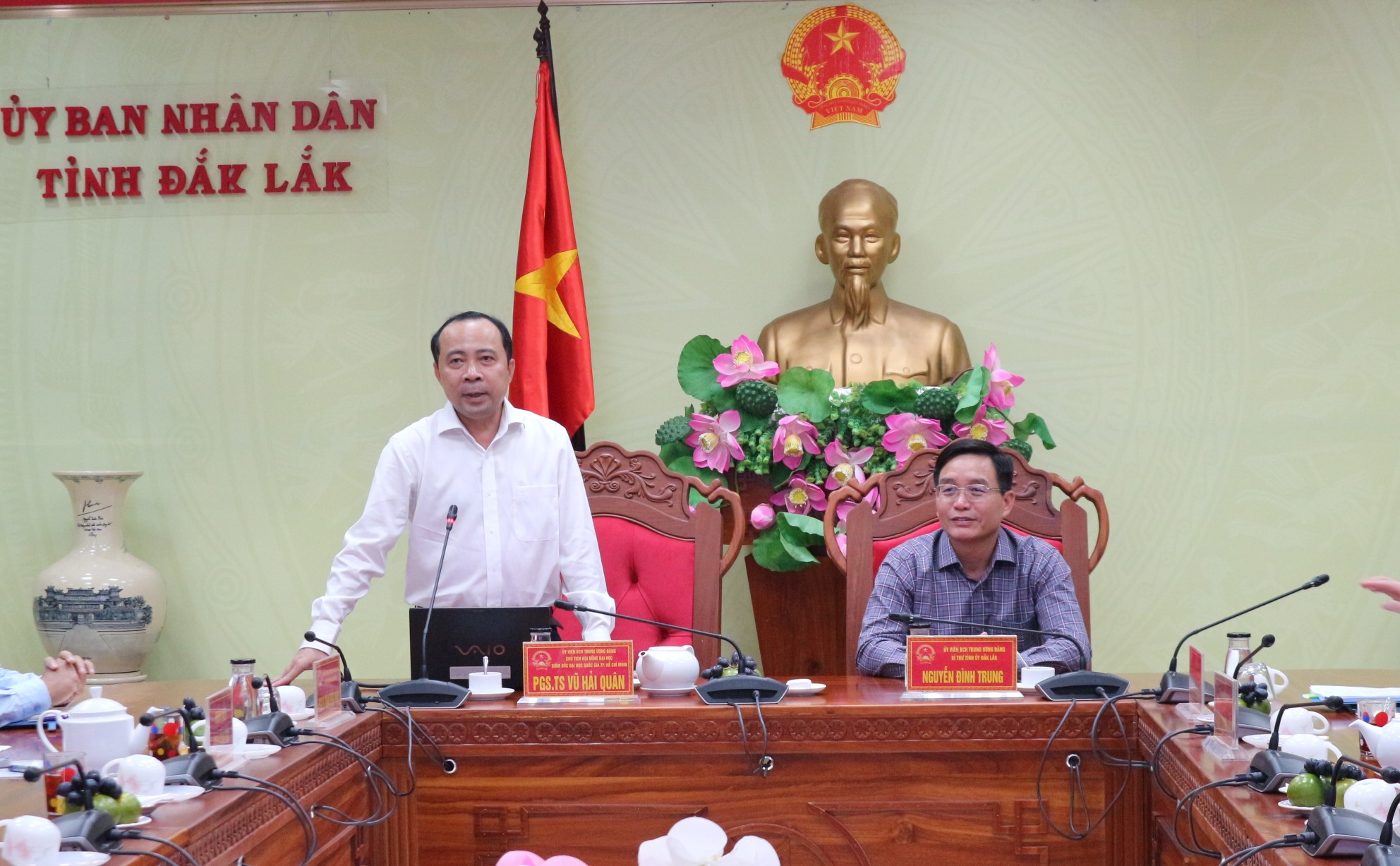 Chiều 14/3, Đoàn công tác của Đại học Quốc gia thành phố Hồ Chí Minh do PGS. TS Vũ Hải Quân, Ủy viên Ban Chấp hành Trung ương Đảng, Chủ tịch Hội đồng đại học, Giám đốc Đại học Quốc gia thành phố Hồ Chí Minh làm Trưởng đoàn đã có buổi làm việc với UBND tỉnh về chuyển đổi số. Tiếp đoàn công tác, về phía tỉnh Đắk Lắk có đồng chí Ủy viên Trung ương Đảng, Bí thư Tỉnh uỷ Nguyễn Đình Trung chủ trì; Phó Chủ tịch Thường trực UBND tỉnh Nguyễn Tuấn Hà; lãnh đạo một số sở, ngành, địa phương, doanh nghiệp cùng tham dự.