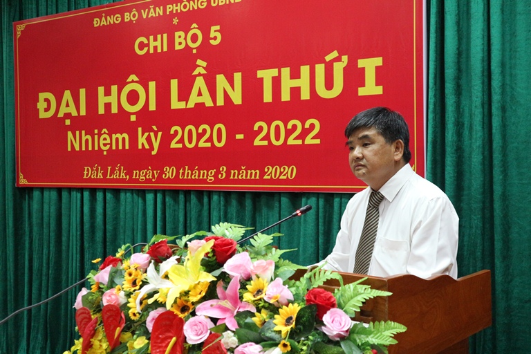 Phát biểu chỉ đạo tại Đại hội, Phó Bí thư Đảng uỷ Văn phòng UBND tỉnh Nguyễn Đức Vinh ghi nhận những kết quả đã đạt được của Chi bộ 5 trong nhiệm kỳ 2017 - 2020. Đồng chí tin tưởng rằng nhiệm kỳ 2020 - 2022, Chi bộ tiếp tục lãnh đạo Đảng viên tiếp tục phát huy những kết quả đã đạt được, khắc phục các hạn chế còn tồn tại để đạt được các chỉ tiêu đề ra, trọng tâm là thực hiện các giải pháp nhiệm vụ sau: tập trung lãnh đạo vào những nội dung mang tính đột phá; giáo dục đạo đức chính trị trong đảng viên, quần chúng; lãnh đạo để quần chúng tham gia góp ý Đảng bộ; tăng cường sự kiểm tra giám sát của cấp uỷ, chi bộ…