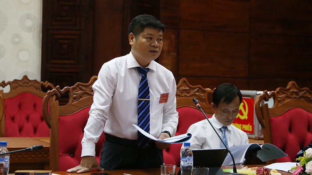 | Phó Bí thư Đảng ủy, Phó Chánh Văn phòng UBND tỉnh Nguyễn Đức Vinh phát biểu chỉ đạo tại đại hội |