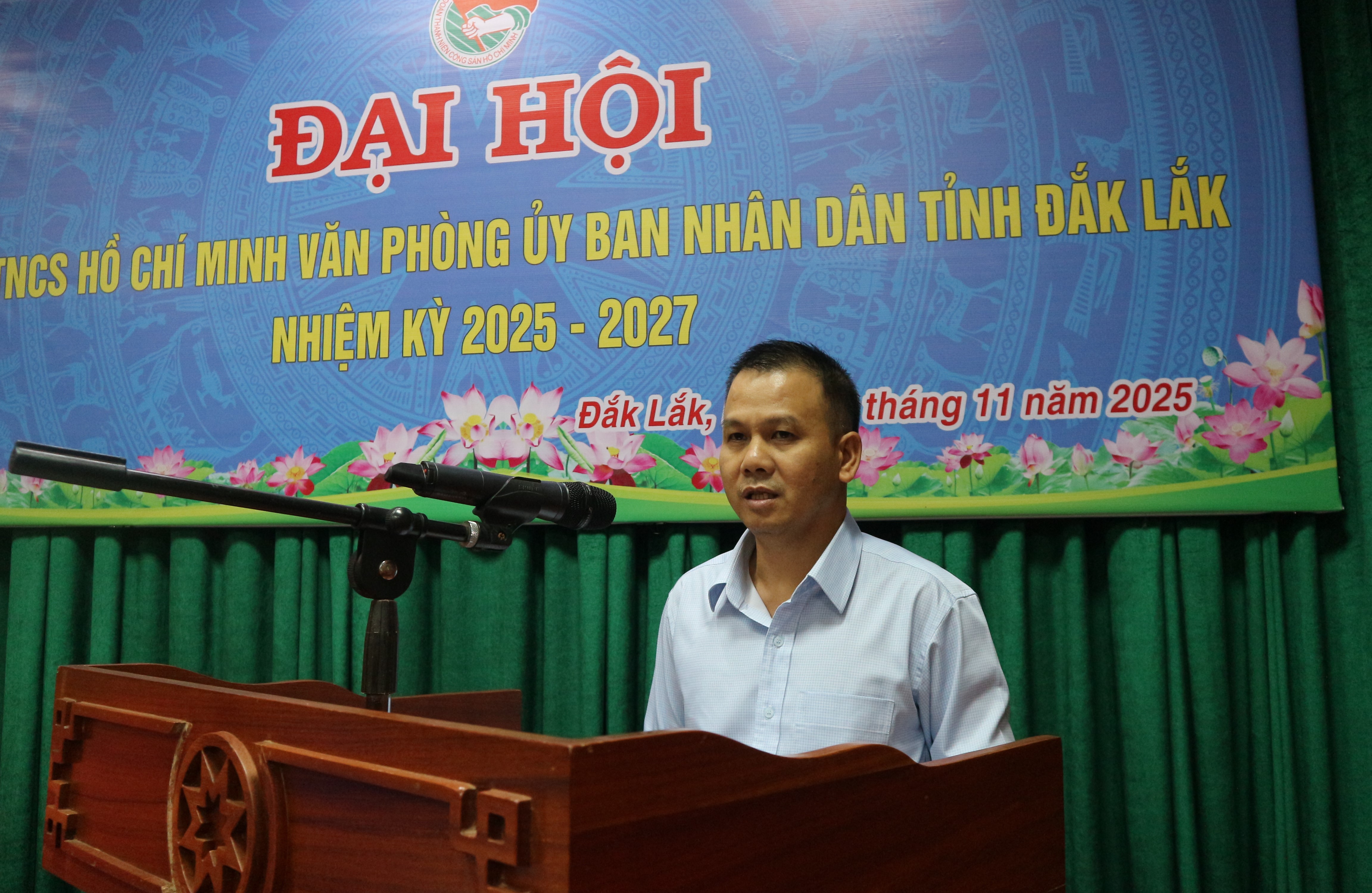 Phát biểu chỉ đạo Đại hội, đồng chí Nguyễn Minh Hòa - Ủy viên Ban Thường vụ Đảng ủy, Phó Chánh Văn phòng UBND tỉnh ghi nhận và đánh giá cao những kết quả mà Đoàn Thanh niên Văn phòng UBND tỉnh đạt được trong nhiệm kỳ qua. Đồng chí đề nghị trong nhiệm kỳ tới, Đoàn tiếp tục làm tốt công tác giáo dục chính trị tư tưởng; rèn luyện phẩm chất, đạo đức; đẩy mạnh học tập và làm theo tư tưởng, đạo đức, phong cách Hồ Chí Minh. Mỗi đoàn viên cần nâng cao trách nhiệm, chất lượng chuyên môn; tích cực giới thiệu đoàn viên ưu tú cho Đảng xem xét kết nạp; phát huy thế mạnh, triển khai hiệu quả các phong trào phù hợp với tình hình thực tế của cơ quan, đơn vị. Đặc biệt, đồng chí nhấn mạnh Đoàn viên Chi đoàn Văn phòng UBND tỉnh Đắk Lắk phải là lực lượng tiên phong trong việc đẩy mạnh các phong trào hành động cách mạng, phát huy tinh thần xung kích, sáng tạo, trách nhiệm của tuổi trẻ; thực hiện chuyển đổi số và cải cách hành chính, ứng dụng mạnh mẽ công nghệ thông tin, đổi mới phương pháp làm việc, góp phần xây dựng nền hành chính chuyên nghiệp, hiện đại; xây dựng quê hương Đắk Lắk ngày một giàu đẹp, văn minh, cùng dân tộc phát triển mạnh mẽ trong kỷ nguyên vươn mình của đất nước.