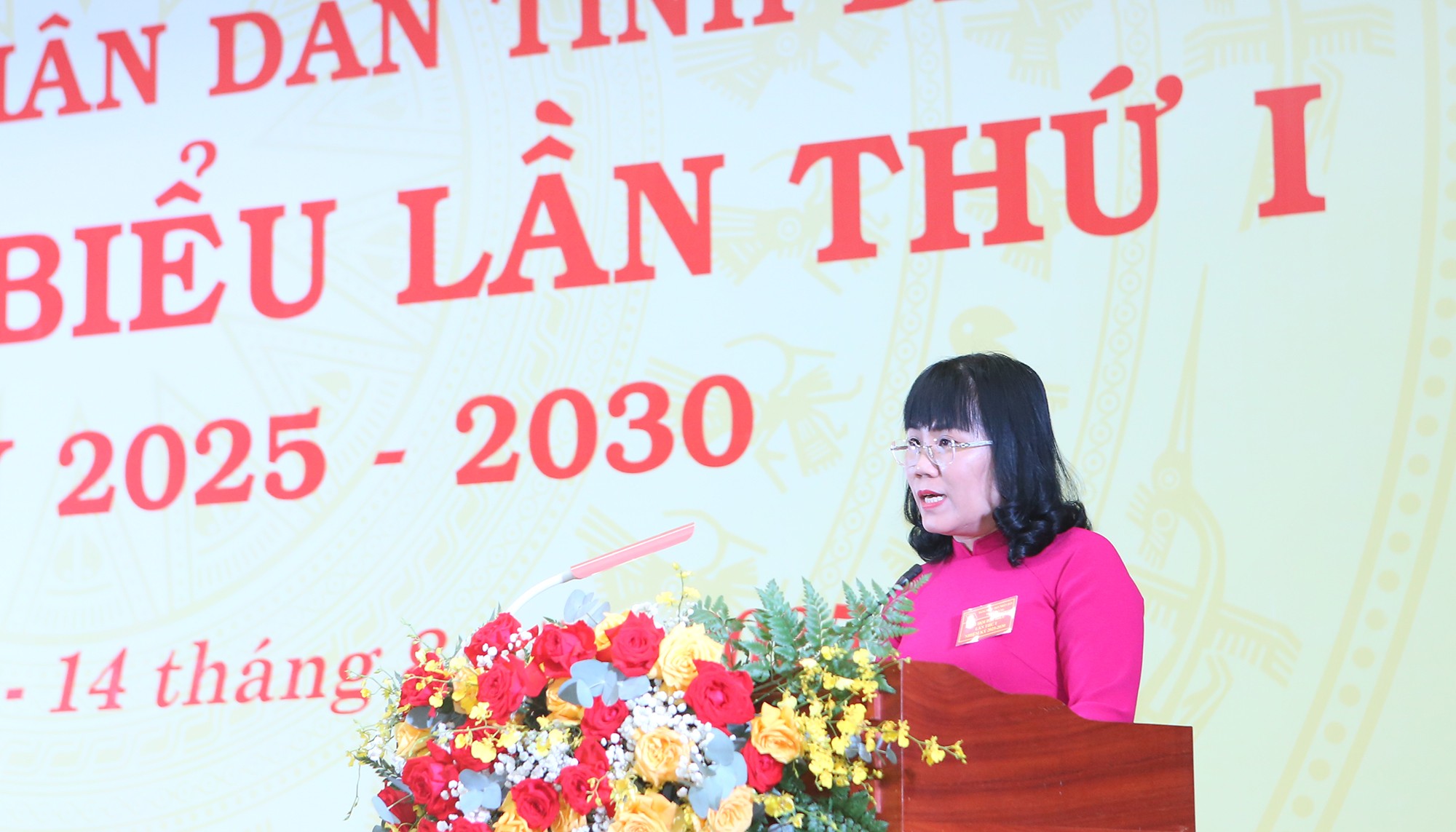 Đồng chí Hồ Thị Nguyên Thảo - Ủy viên Ban Thường vụ Tỉnh ủy, Phó Bí thư Thường trực Đảng ủy, Phó Chủ tịch Thường trực UBND tỉnh phát biểu tại Đại hội.