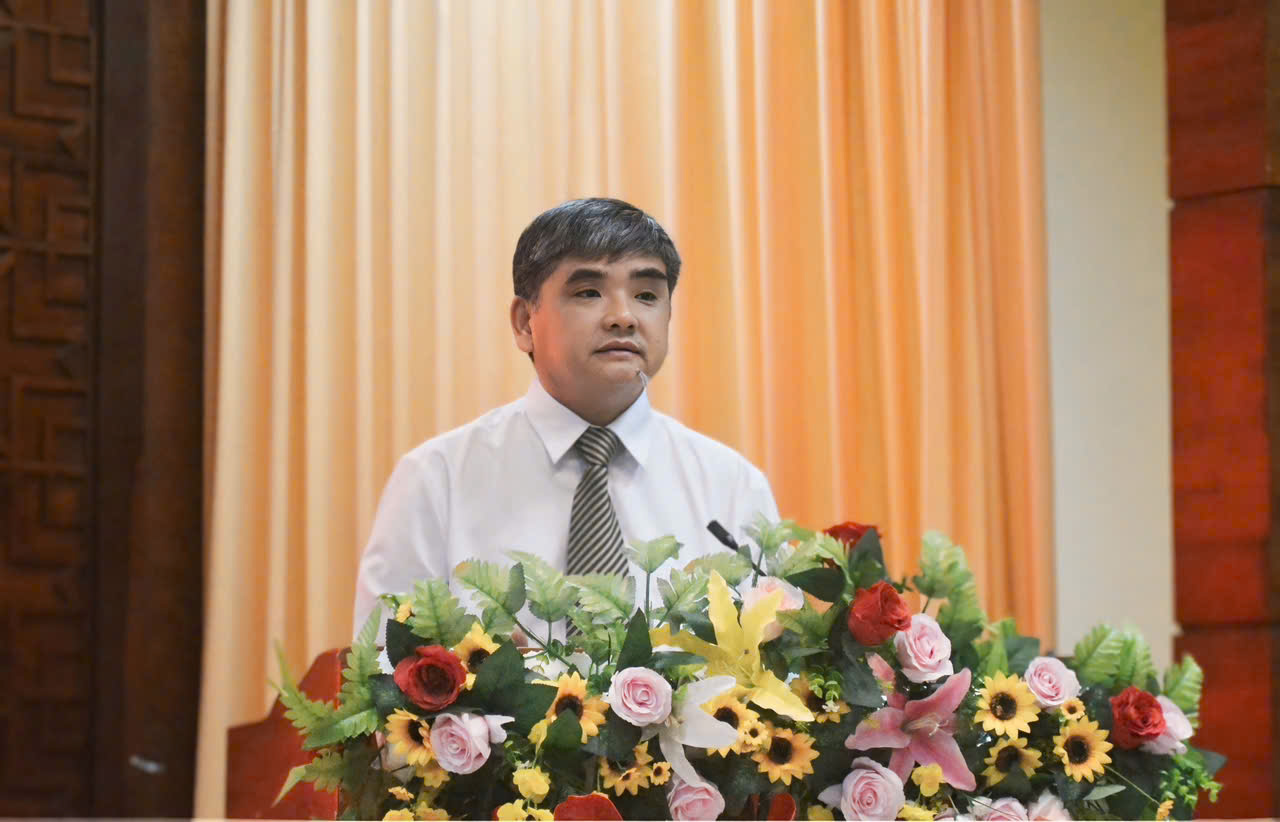 | Đồng chí Nguyễn Đức Vinh, Bí thư Đảng uỷ, Chánh Văn phòng UBND tỉnh phát biểu khai mạc đại hội |