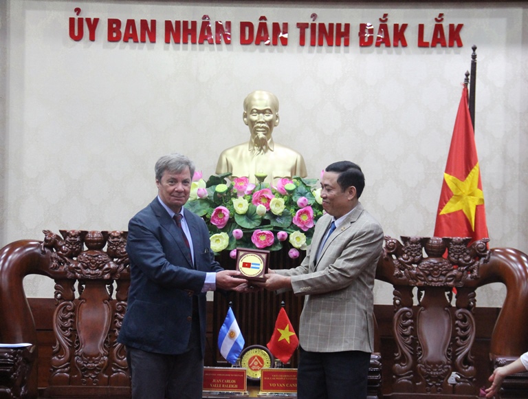 Phát biểu tại buổi tiếp, Đại sứ Argentina tại Việt Nam Juan Carlos Valle Raleigh cám ơn sự đón tiếp nồng nhiệt của tỉnh. Thời gian qua, mối quan hệ giữa 2 nước Việt Nam – Argentina ngày càng thắt chặt, tăng cường, điều này được thể hiện ở chuyến thăm giữa lãnh đạo cấp cao của 2 nước; nhiều thoả thuận trên các lĩnh vực được ký kết; kim ngạch thương mại giữa 2 nước tăng lên qua từng năm. Argentina là nước có thế mạnh trong chế biến nông sản và chăn nuôi đại gia súc. Vì vậy, có thể chia sẻ kỹ thuật chăn nuôi, chế biến cho tỉnh Đắk Lắk. Tới đây, phía Đại sứ Argentina tại Việt Nam sẽ nỗ lực kết nối các doanh nghiệp của Argentina vào tìm hiểu, đầu tư các lĩnh vực mà tỉnh kêu gọi đầu tư, nhất là chế biến, xuất khẩu cà phê, ca cao, cao su sang thị trường Nam Mỹ nói chung, Argentina nói riêng, góp phần tăng kim ngạch thương mại 2 chiều giữa hai bên.