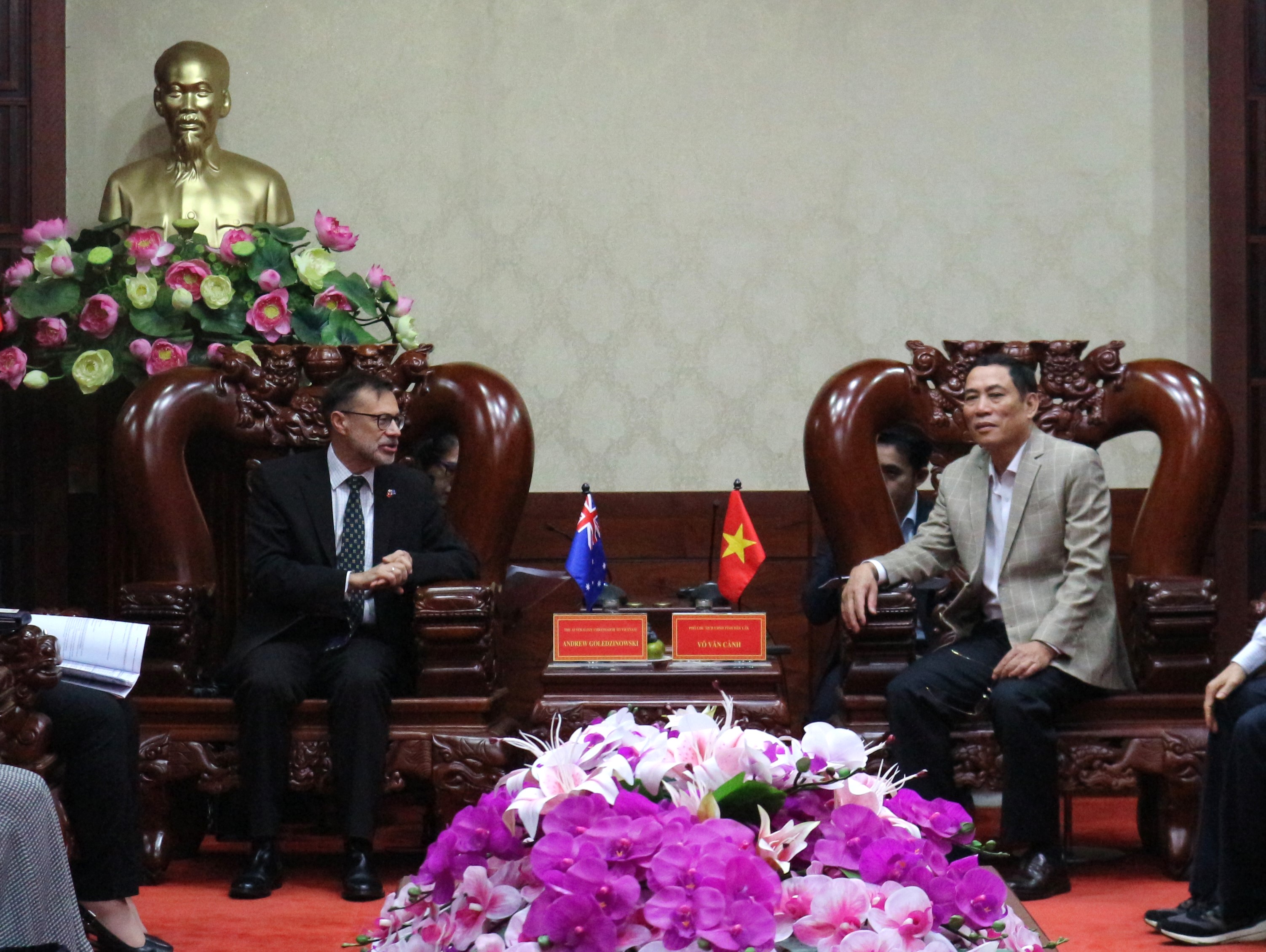Sáng 09/5, Đoàn công tác của Đại sứ quán, Tổng Lãnh sự quán Australia do ngài Andrew Goledzinowski - Đại sứ Australia tại Việt Nam làm Trưởng đoàn đã chào xã giao, làm việc với UBND tỉnh Đắk Lắk. Phó Chủ tịch UBND tỉnh Võ Văn Cảnh tiếp và chủ trì buổi làm việc cùng lãnh đạo các sở, ngành liên quan tham dự.