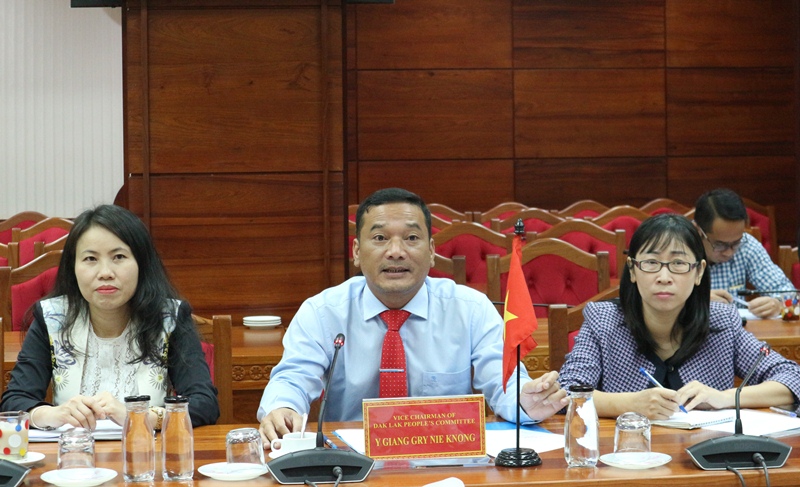 | Phó Chủ tịch UBND tỉnh Y Giang Gry Niê Knơng trao đổi tại buổi làm việc |