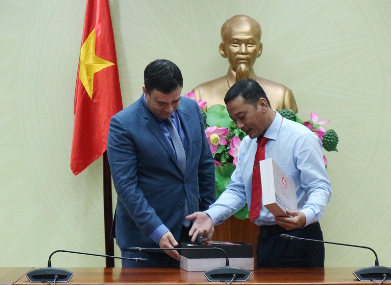 | Lãnh đạo UBND tỉnh tặng quà (các sản phẩm nông nghiệp của tỉnh) cho Đại sứ quán Israel |
