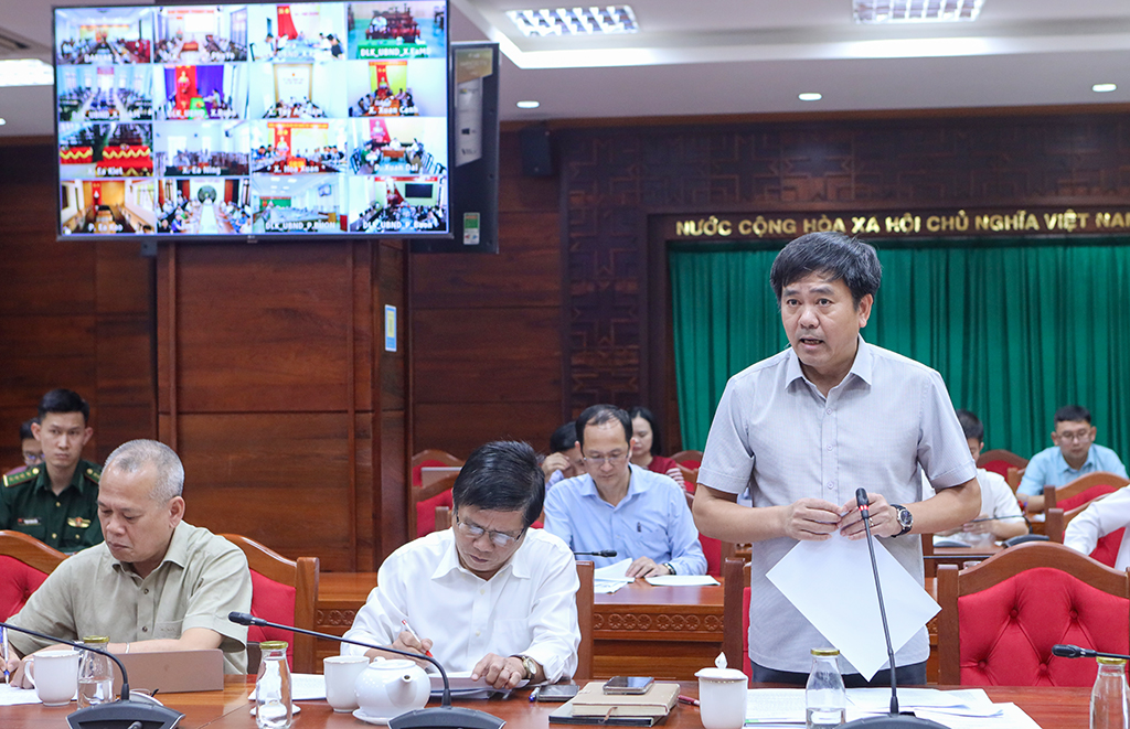 Phó Chủ tịch UBND tỉnh Nguyễn Thiên Văn phát biểu tại cuộc họp.