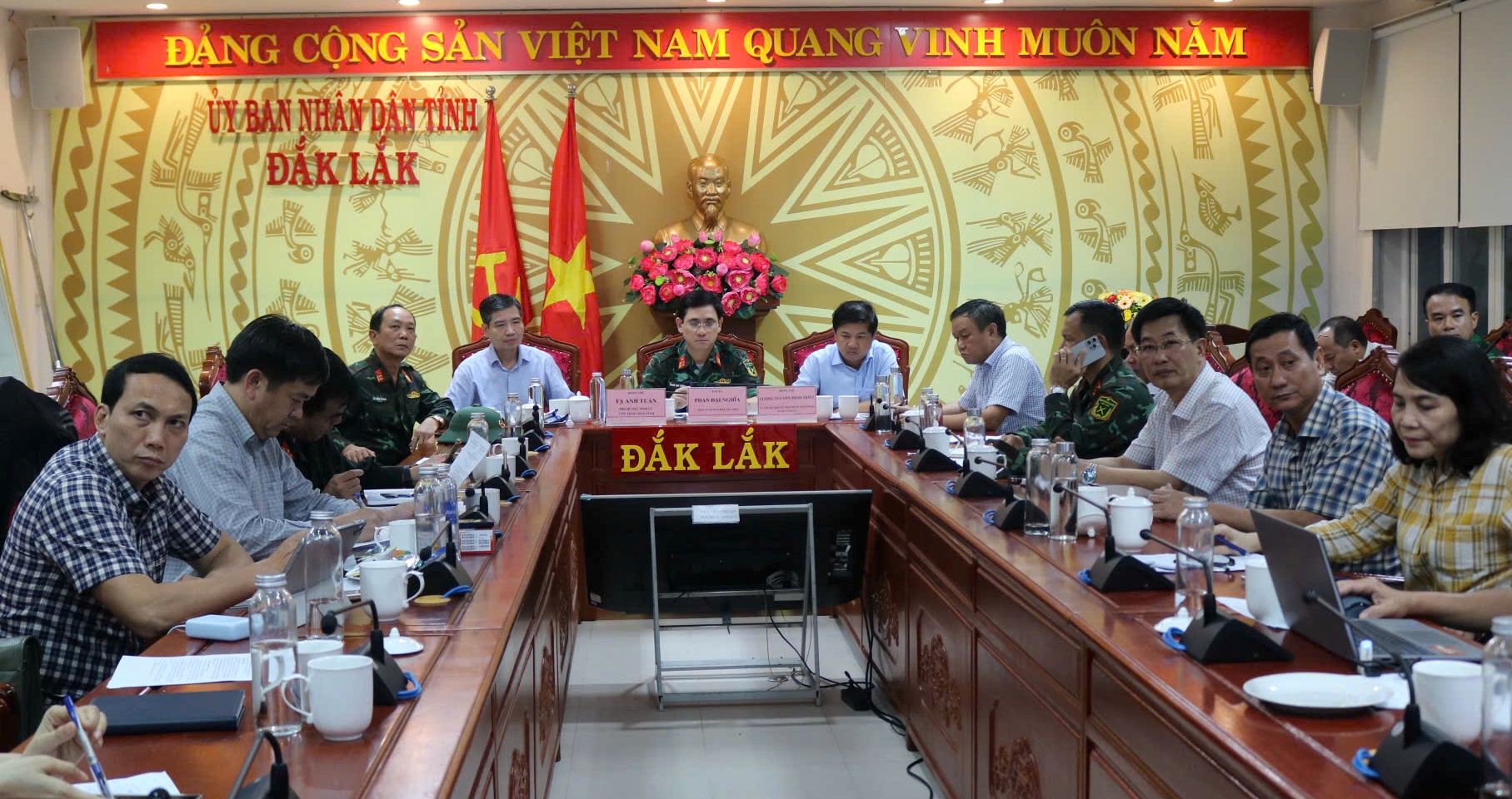 Tham dự tại cơ sở 2 UBND tỉnh Đắk Lắk (phường Tuy Hòa) có các đồng chí: Lương Nguyễn Minh Triết - Ủy viên dự khuyết Trung ương Đảng, Bí thư Tỉnh ủy; Cao Thị Hòa An - Phó Bí thư Thường trực Tỉnh ủy, Chủ tịch HĐND tỉnh; Tạ Anh Tuấn - Phó Bí thư Tỉnh ủy, Chủ tịch UBND tỉnh; Đại tá Phan Đại Nghĩa - Phó tư lệnh kiêm Tham mưu trưởng Quân khu V; các đồng chí Ủy viên Ban Thường vụ Tỉnh ủy, cùng lãnh đạo các sở, ngành liên quan.