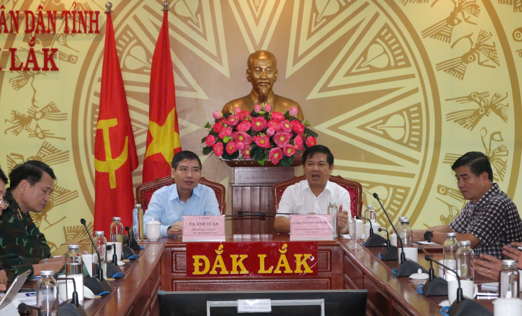 Chiều 19/11, UBND tỉnh Đắk Lắk tổ chức cuộc họp khẩn triển khai công tác ứng phó mưa lớn, lũ lụt trên địa bàn tỉnh. Chủ trì cuộc họp có các đồng chí: Lương Nguyễn Minh Triết - Ủy viên dự khuyết Ban Chấp hành Trung ương Đảng, Bí thư Tỉnh ủy; Tạ Anh Tuấn - Phó Bí thư Tỉnh ủy, Chủ tịch UBND tỉnh. Tham dự có Phó Chủ tịch UBND tỉnh Nguyễn Thiên Văn; lãnh đạo các sở, ngành liên quan.