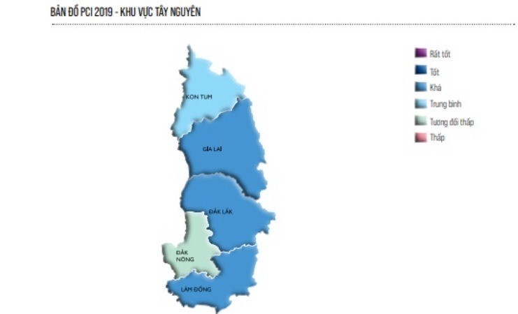 | Bản đồ PCI năm 2019 - Khu vực Tây Nguyên |