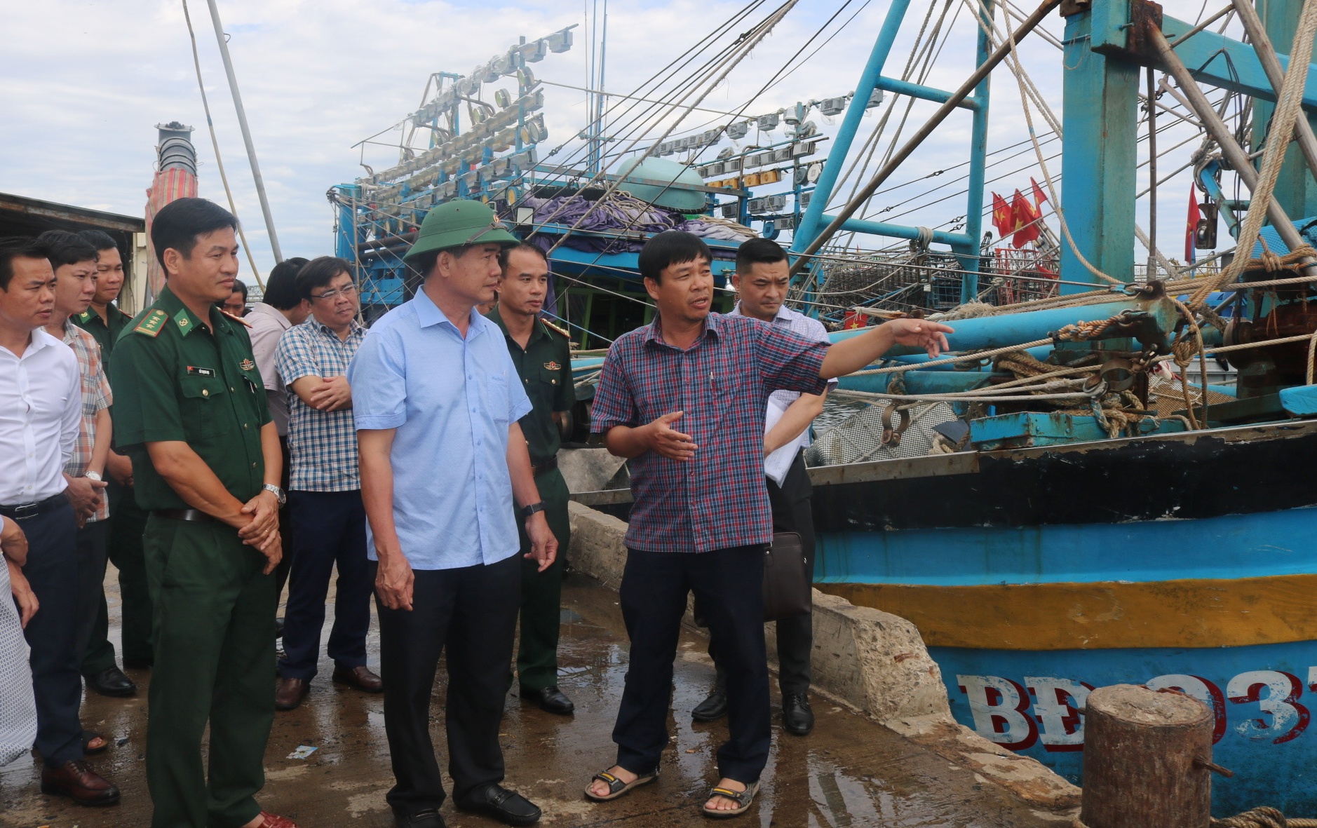 Phó Chủ tịch UBND tỉnh Nguyễn Thiên Văn kiểm tra tình hình tàu ra vào cảng tại cảng cá Phú Lạc.