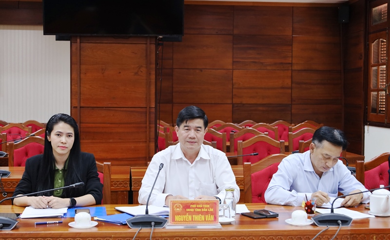 | Đồng chí Nguyễn Thiên Văn, Phó Chủ tịch UBND tỉnh Đắk Lắk phát biểu tại buổi làm việc |