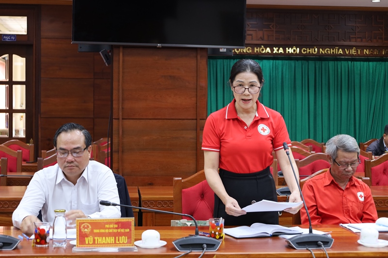 | Đồng chí Vũ Thanh Lưu, Phó Chủ tịch Trương ương Hội Chữ thập đỏ Việt Nam phát biểu tại buổi làm việc |