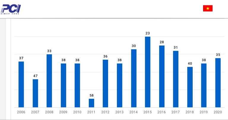 | Xếp hạng PCI của Đắk Lắk qua các năm |