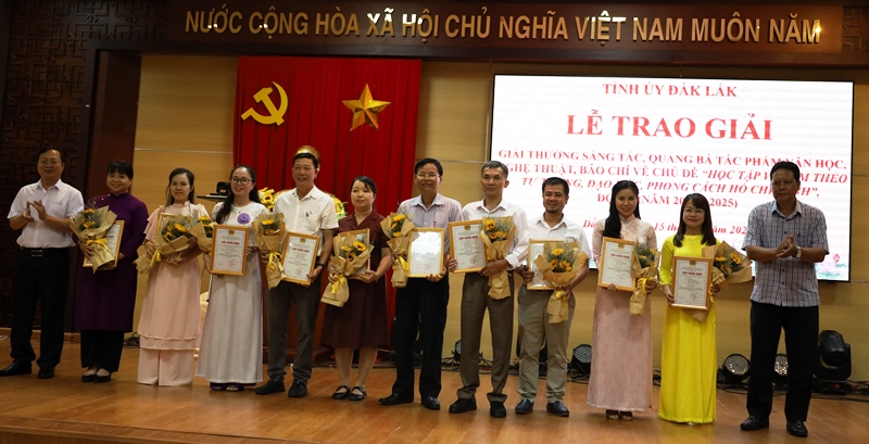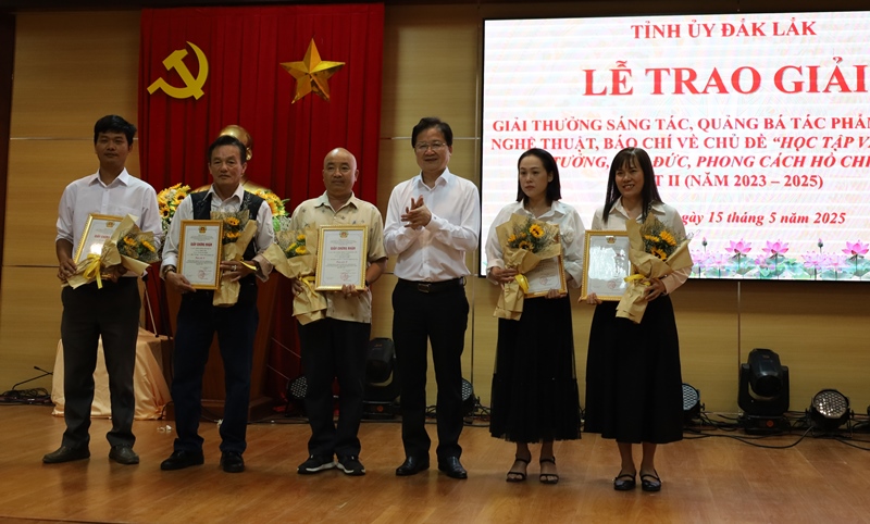 Sáng 15/5, Tỉnh ủy Đắk Lắk đã trao giải cho các tác giả có tác phẩm văn học, nghệ thuật, báo chí xuất sắc về chủ đề “Học tập và làm theo tư tưởng, đạo đức, phong cách Hồ Chí Minh”, đợt II (2023-2025).