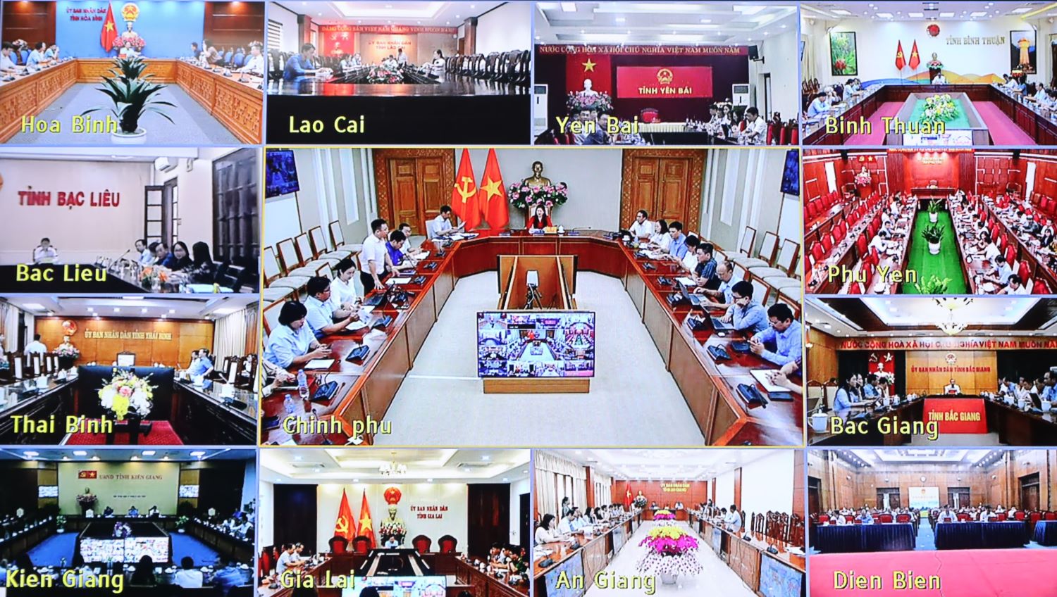 | Cuộc họp được truyền trực tuyến đến các địa phương (Ảnh chụp màn hình) |