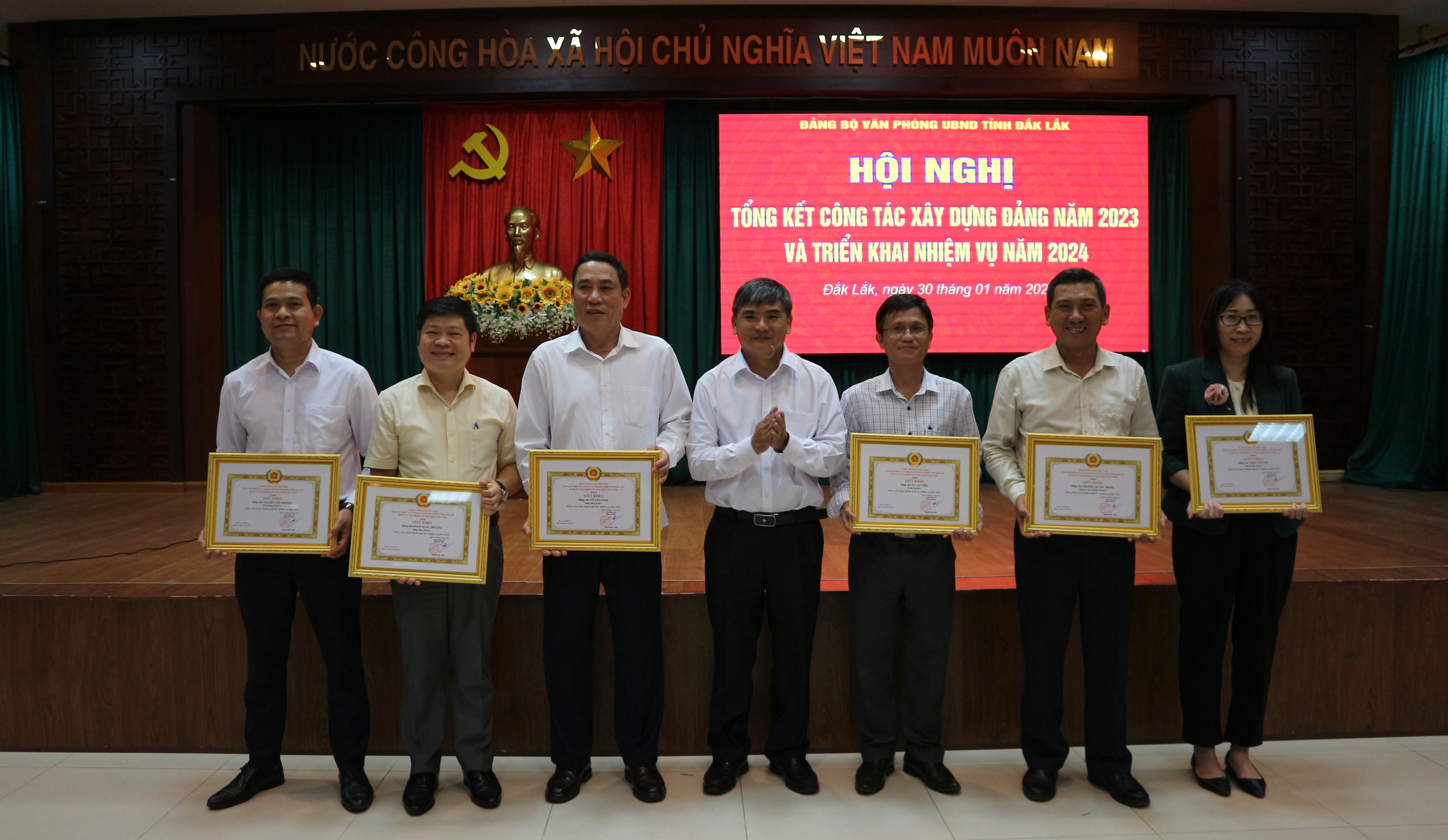 Dịp này, Đảng uỷ Văn phòng đã trao Giấy khen cho 2 tập thể chi bộ, tập thể lãnh đạo, quản lý và 18 cá nhân lãnh đạo quản lý, đảng viên.