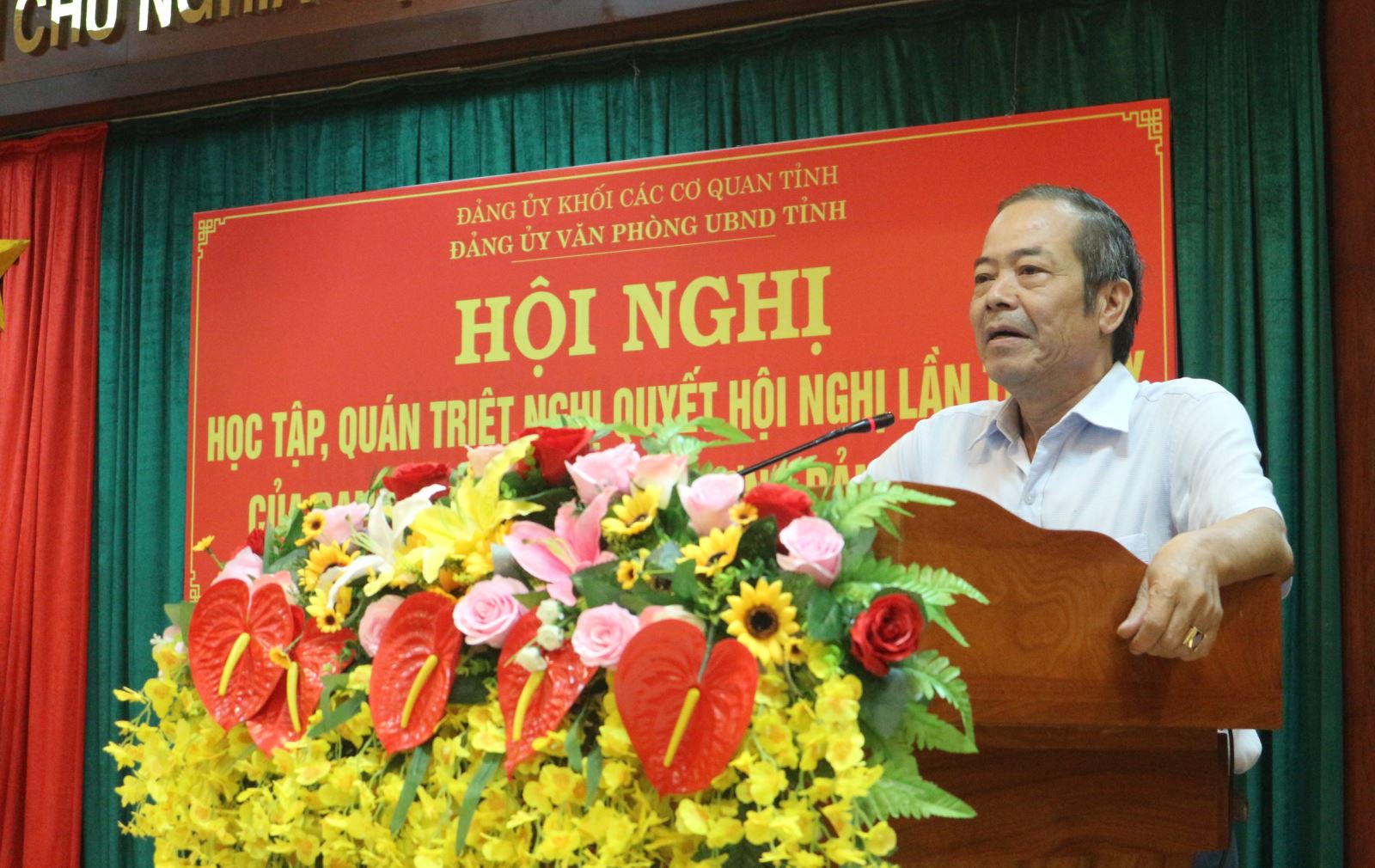 Xuất phát từ ý nghĩa và tầm quan trọng đó, sáng 16/8, Đảng ủy Văn phòng UBND tỉnh đã tổ chức Hội nghị học tập, quán triệt các Nghị quyết tại Hội nghị lần thứ 7 của Ban Chấp hành Trung ương Đảng khóa XII cho toàn thể cán bộ, công chức, viên chức và người lao động đang công tác tại đơn vị nhằm đưa các Nghị quyết này dần đi vào thực tiễn cuộc sống.