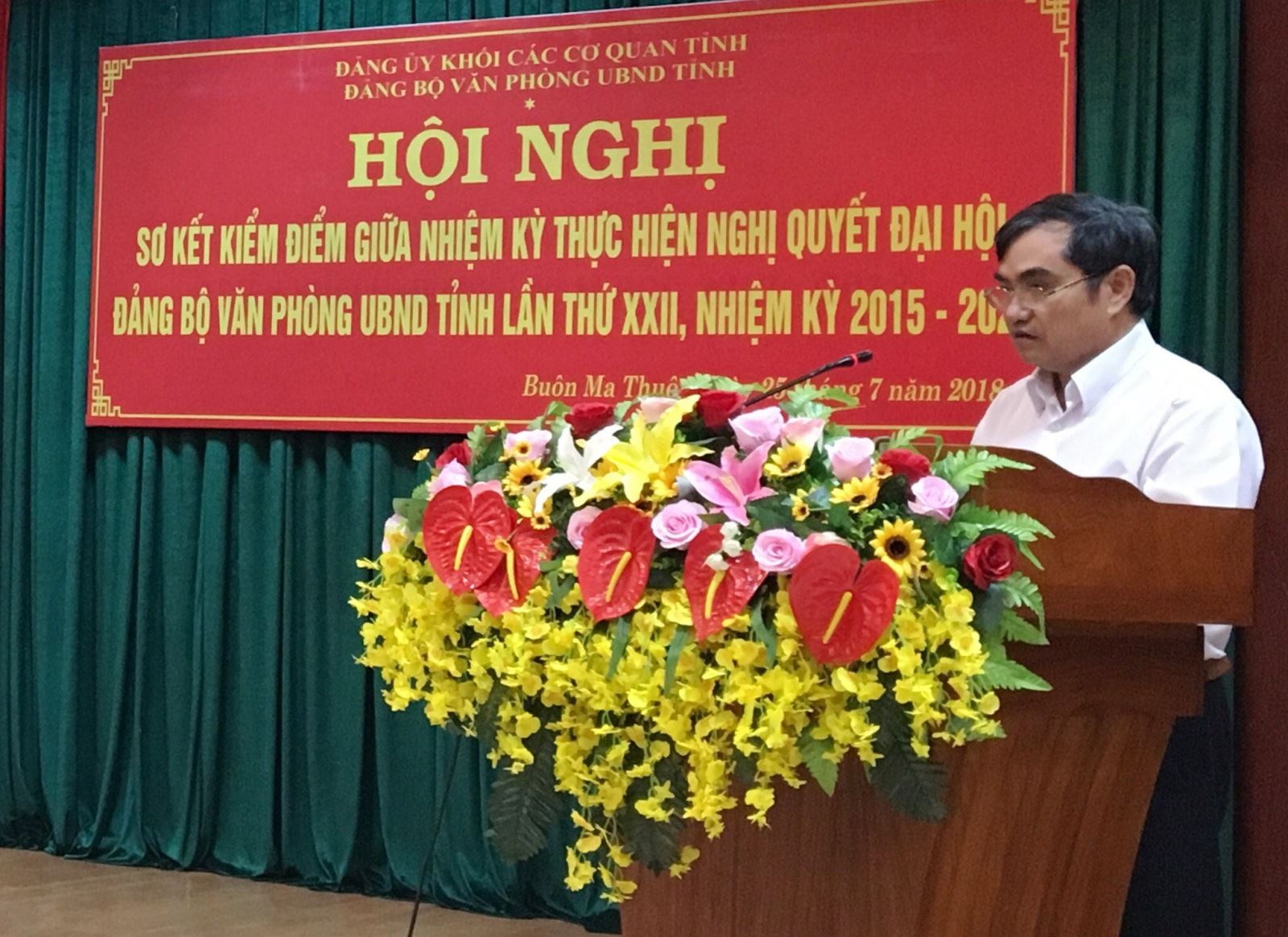 Phát biểu chỉ đạo tại hội nghị, Phó Bí thư Đảng ủy khối cơ quan tỉnh - Trần Quang Tân ghi nhận các kết quả mà Đảng ủy Văn phòng UBND tỉnh đã đạt được trong nửa nhiệm kỳ qua. Đồng thời nhấn mạnh: Trong nửa nhiệm kỳ còn lại 2015 - 2020, Đảng ủy Văn phòng UBND tỉnh cần tiếp tục phát huy tinh thần, trí tuệ tập thể; cần xác định rõ ưu điểm, nhược điểm thời gian qua; thẳng thắn nhìn nhận vấn đề còn tồn tại để cùng nhau thảo luận đưa ra các giải pháp nâng cao hiệu quả hoạt động nhằm thực hiện đạt được mục tiêu theo Nghị quyết Đại hội Đảng bộ Văn phòng đã đề ra.