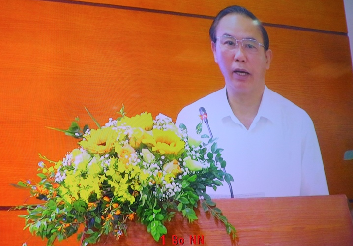 | Thứ trưởng Bộ Nông nghiệp và Phát triển nông thôn Phùng Đức Tiến phát biểu tại hội nghị (Ảnh chụp từ màn hình) |