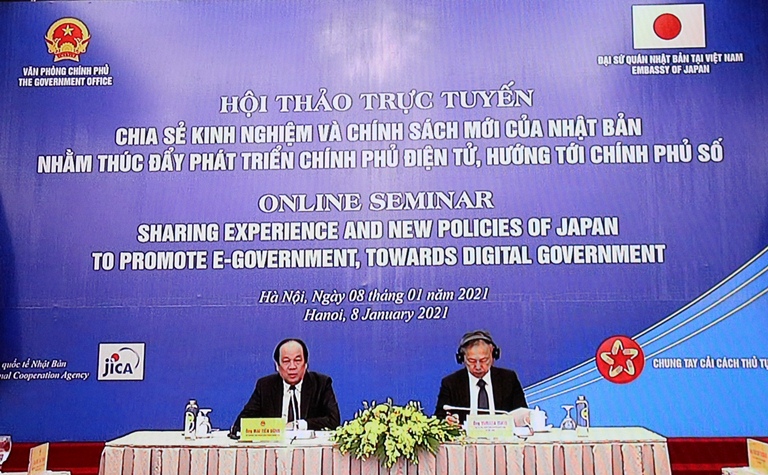 Tại buổi hội thảo, các đại biểu được nghe các tham luận về: kết quả công tác cải cách thủ tục hành chính, xây dựng chính phủ điện tử và nhiệm vụ trọng tâm năm 2021; chính sách mới của Thủ tướng Nhật Bản Suga để phát triển chính phủ số và kinh nghệm số hóa dịch vụ công và thủ tục hành chính tại Nhật Bản; xây dựng chính sách sử dụng trí tuệ nhân tạo. Được biết, đây là Hội thảo lần thứ 3 giữa Văn phòng Chính phủ và Đại sứ quán Nhật Bản tại Việt Nam trong lĩnh vực phát triển chính phủ điện tử (lần thứ nhất vào tháng 8/2019, lần thứ 2 vào tháng 02/2020) và là một trong các hoạt động hợp tác, hỗ trợ của Nhật Bản dành cho Việt Nam trong lĩnh vực triển khai Chính phủ điện tử. Qua đó, Việt Nam sẽ tiếp tục có những bước đi vững chắc trong triển khai Chính phủ điện tử, góp phần vào sự phát triển của đất nước, sự phồn vinh của dân tộc và quan hệ tốt đẹp giữa Việt Nam - Nhật Bản.