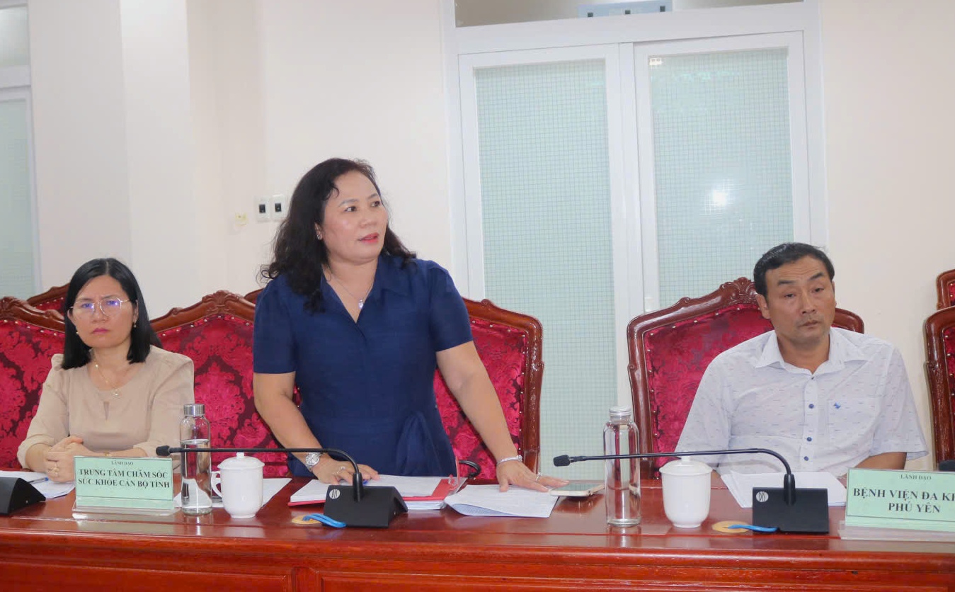 Bà Nguyễn Thị Hồng Thủy - Giám đốc Trung tâm chăm sóc sức khỏe cán bộ trực thuộc Bệnh viện Đa khoa Phú Yên báo cáo tại buổi làm việc.