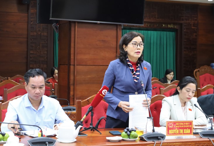 | Phó Trưởng đoàn chuyên trách Đoàn ĐBQH Quốc hội tỉnh Lê Thị Thanh Xuân phát biểu kết luận buổi làm việc |