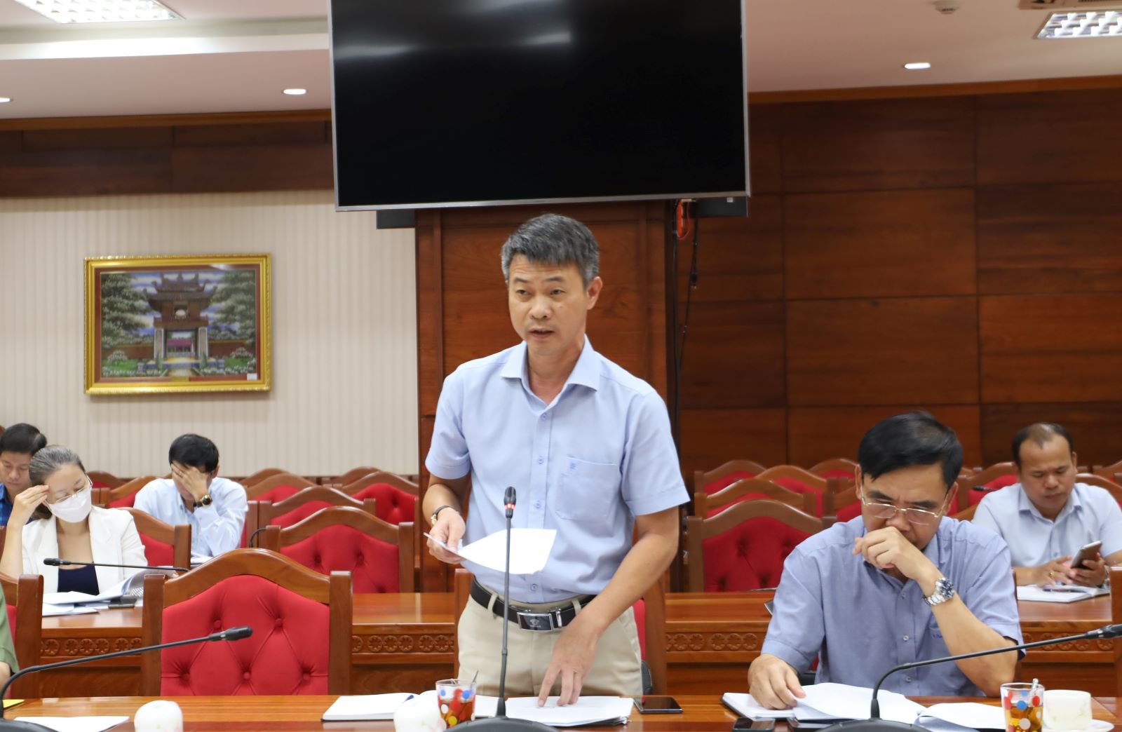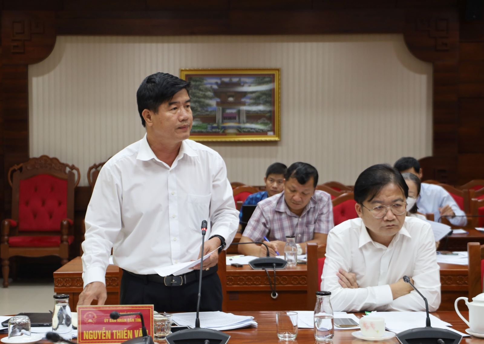 | Phó Chủ tịch UBND tỉnh Nguyễn Thiên Văn phát biểu thảo luận tại cuộc họp |