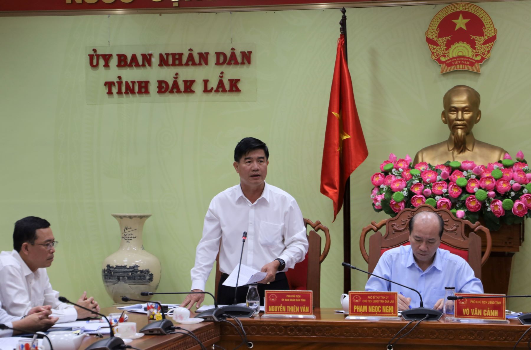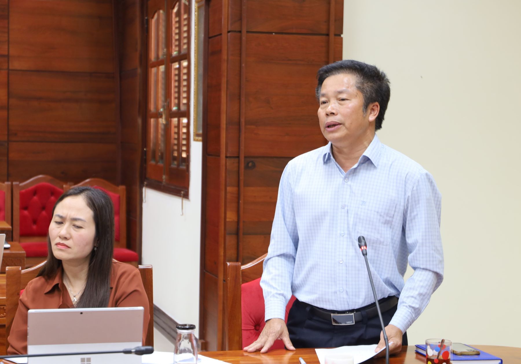 | Phó Chủ tịch UBND tỉnh Nguyễn Thiên Văn phát biểu thảo luận tại cuộc họp |