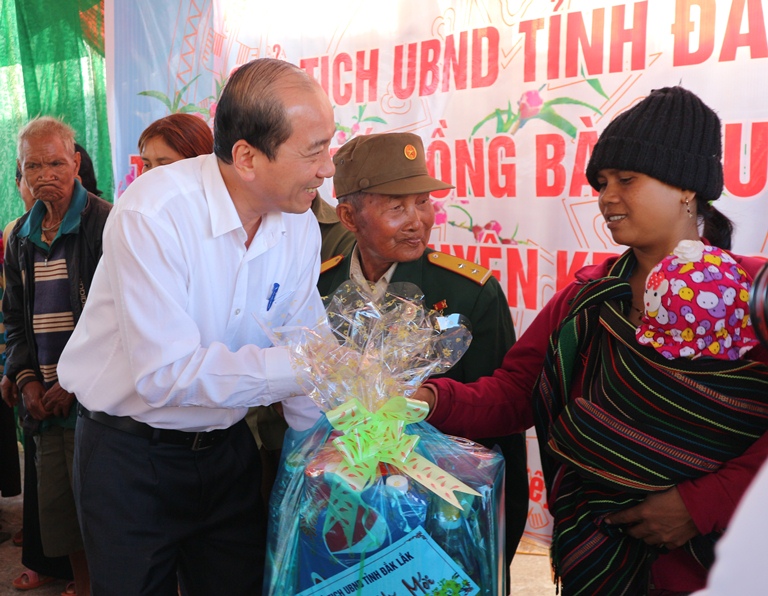 | Chủ tịch UBND tỉnh, Phạm Ngọc Nghị tặng quà cho các gia đình chính sách tại buôn Dliêya A, xã Dliêya, huyện Krông Năng, tỉnh Đắk Lắk |