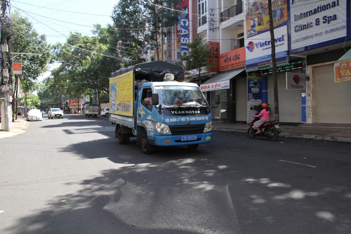 | Tuyên truyền phòng chống dịch COVID-19 tại Tp. Buôn Ma Thuột thời điểm dịch bùng phát năm 2021. (Hình minh họa) |