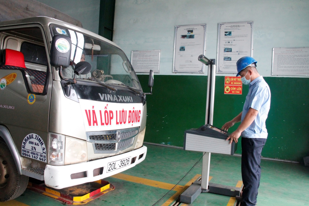 | Phương tiện kiểm định tại Trung tâm Đăng kiểm xe cơ giới 47-03D (Nguồn:baodaklak.vn) |