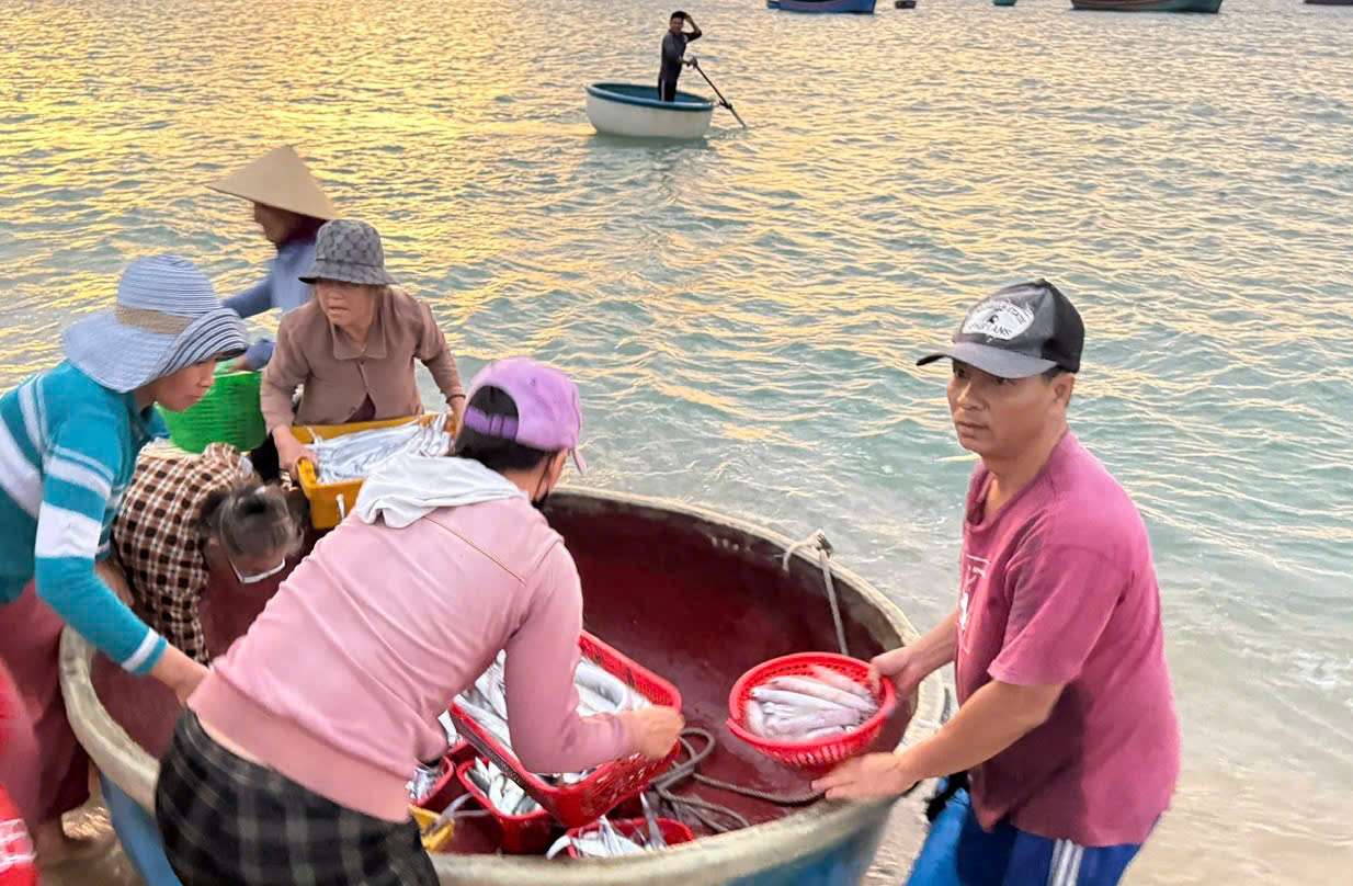 Người dân mua, bán hải sản tại làng chài Nhơn Hội - thôn Nhơn Hội, xã Ô Loan (Hình minh họa).