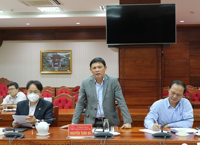 | Phó Chủ tịch Thường trực UBND tỉnh, Trưởng ban Đổi mới và Phát triển doanh nghiệp tỉnh Nguyễn Tuấn Hà báo cáo kết quả sắp xếp doanh nghiệp |