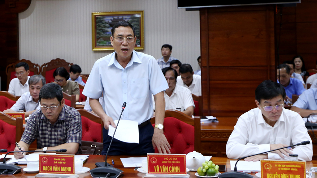 | Đồng chí Võ Văn Cảnh – Phó Chủ tịch UBND tỉnh phát biểu tại buổi làm việc. |